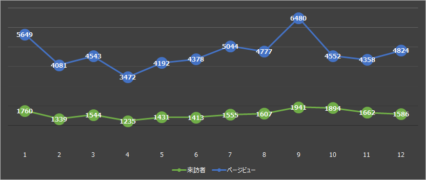 平均すると月当たり4696pvでした。