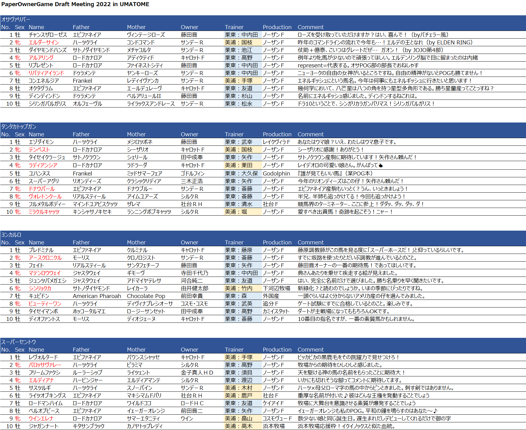 これで現在情報を得ていないのがジャガンナートの馬主さんだけです。