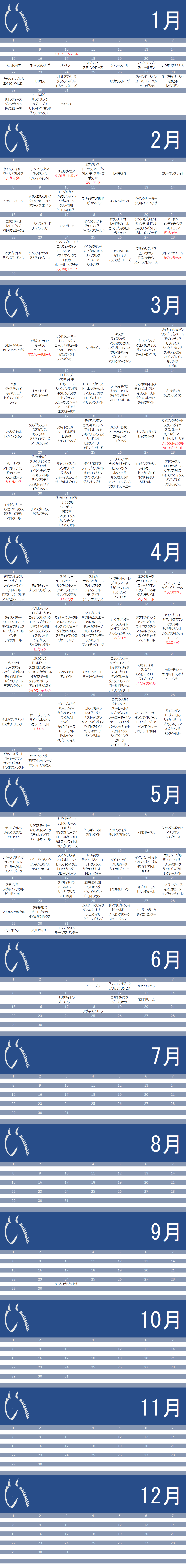 G1馬の誕生日カレンダー